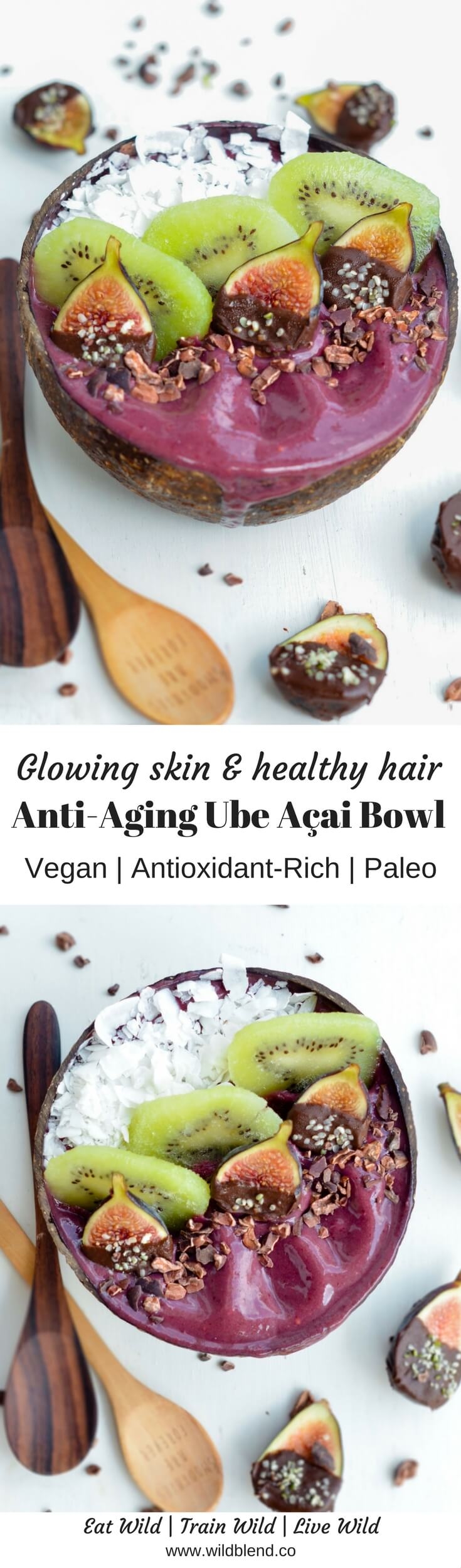 This nourishing Ube Açai bowl is made with purple yam and chock-full with antioxidants and skin-healthy collagen.