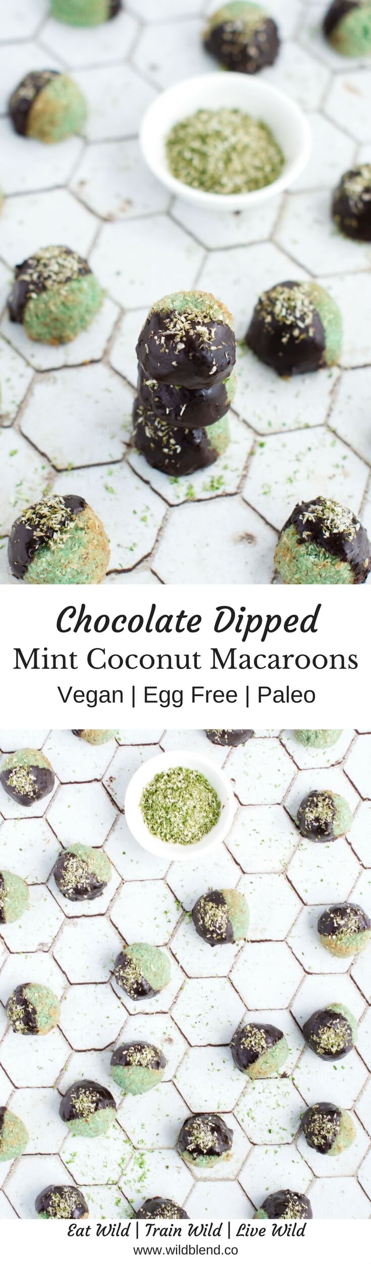 Mint Coconut Macaroons Dipped in Dark Chocolate (Vegan, Paleo)