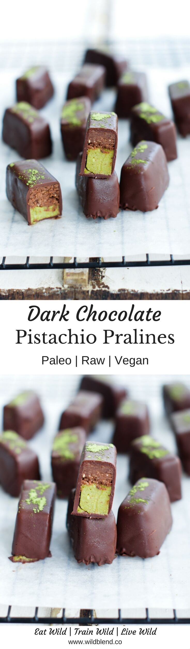 While they’re inspired by the decadent chocolate pralines you see in shops, I nixed all the stabilizers, processed sugars, corn syrup and emulsifiers found in the store-bought version. These are essentially made with only five main ingredients and Fit Mixes Chocolate Chia Protein Ball Mix for the chocolate layer. A soft pistachio cream serves as a base to a fluffy chocolate layer, then the whole thing gets drizzled in antioxidant-rich dark chocolate.