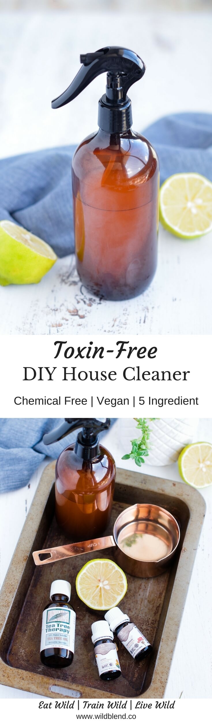 This DIY toxin-free all-purpose house cleaner is made with all natural ingredients and can be used for counter tops, windows or bathrooms!