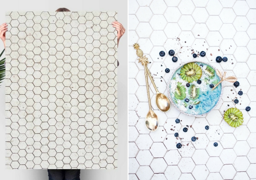 Let me show you my absolute favourites from their big selection (it's soooo hard to choose). This Hexagon Tile Floor vinyl (see below) is one of my absolute favourites and I use it all the time for my flatlay shots.