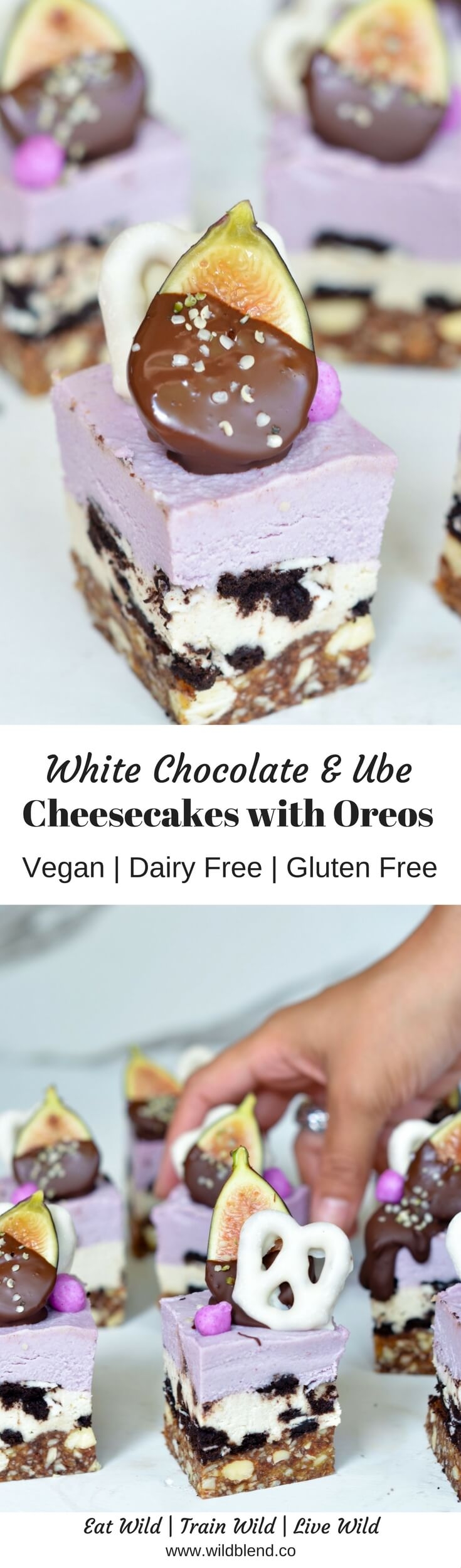 These white chocolate and ube mini cheesecakes add fun and colour to your dessert while keeping it deliciously dairy and gluten-free.