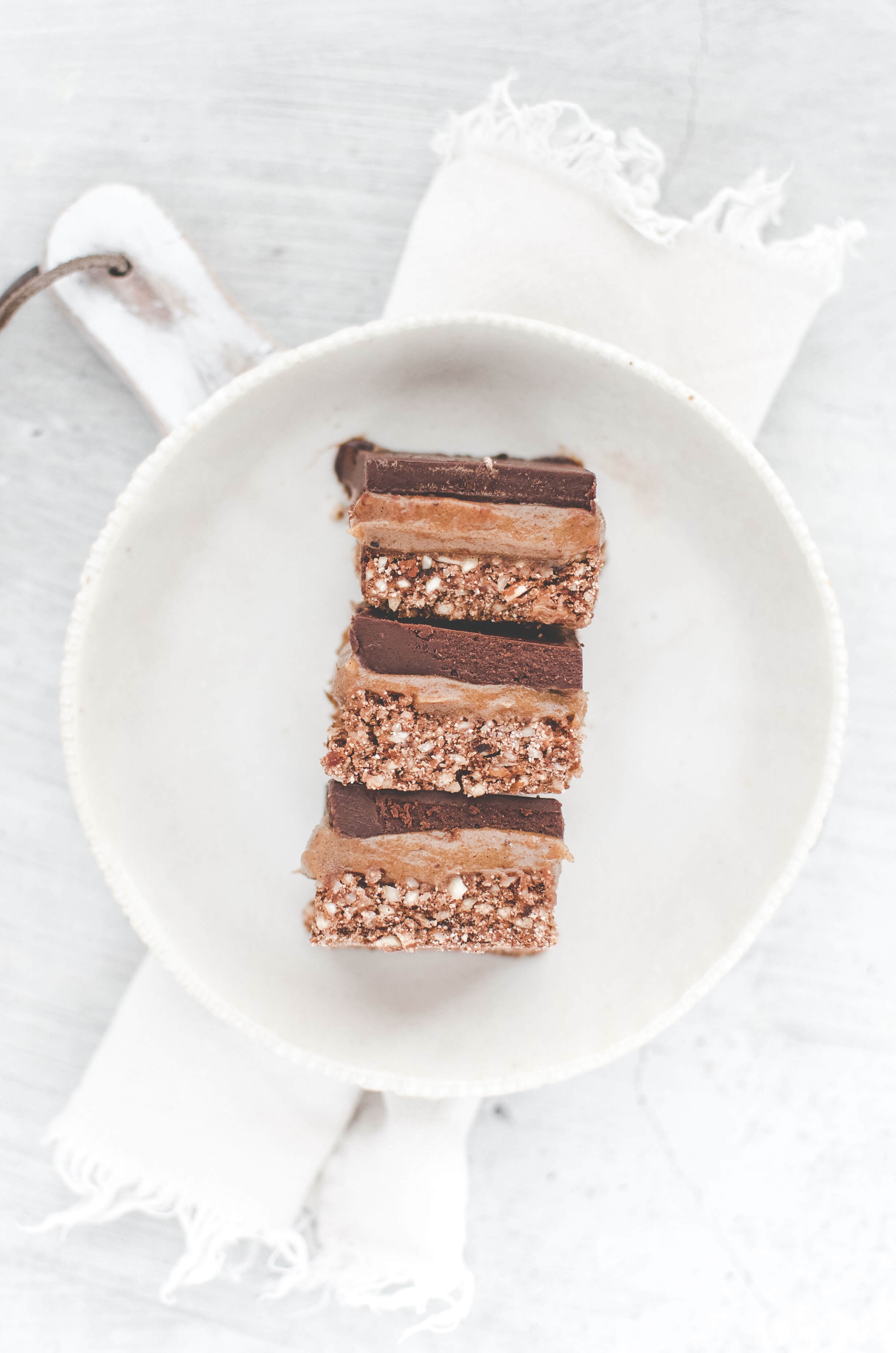 Think sticky caramel sandwiched between a healthy chocolate and gluten-free biscuit layers.